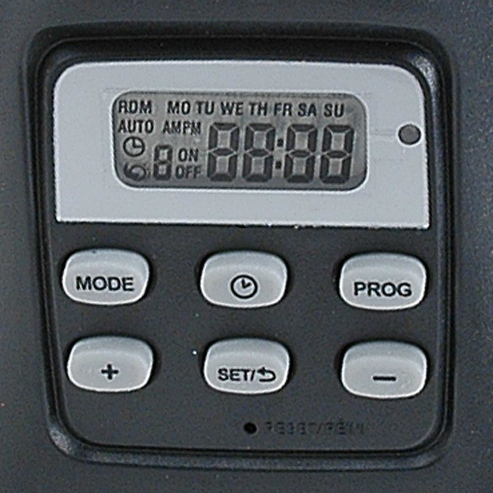 Our versatile outdoor digital timer is great for powering up all your outdoor lighting products. Our outdoor timer can be programmed to come on randomly, at the exact time, dusk to dawn photo cell, on at dusk photo cell/turn off by exact time, or always on functions. This outdoor timer can handle 15 Amps/1000 watts and is UL Listed.