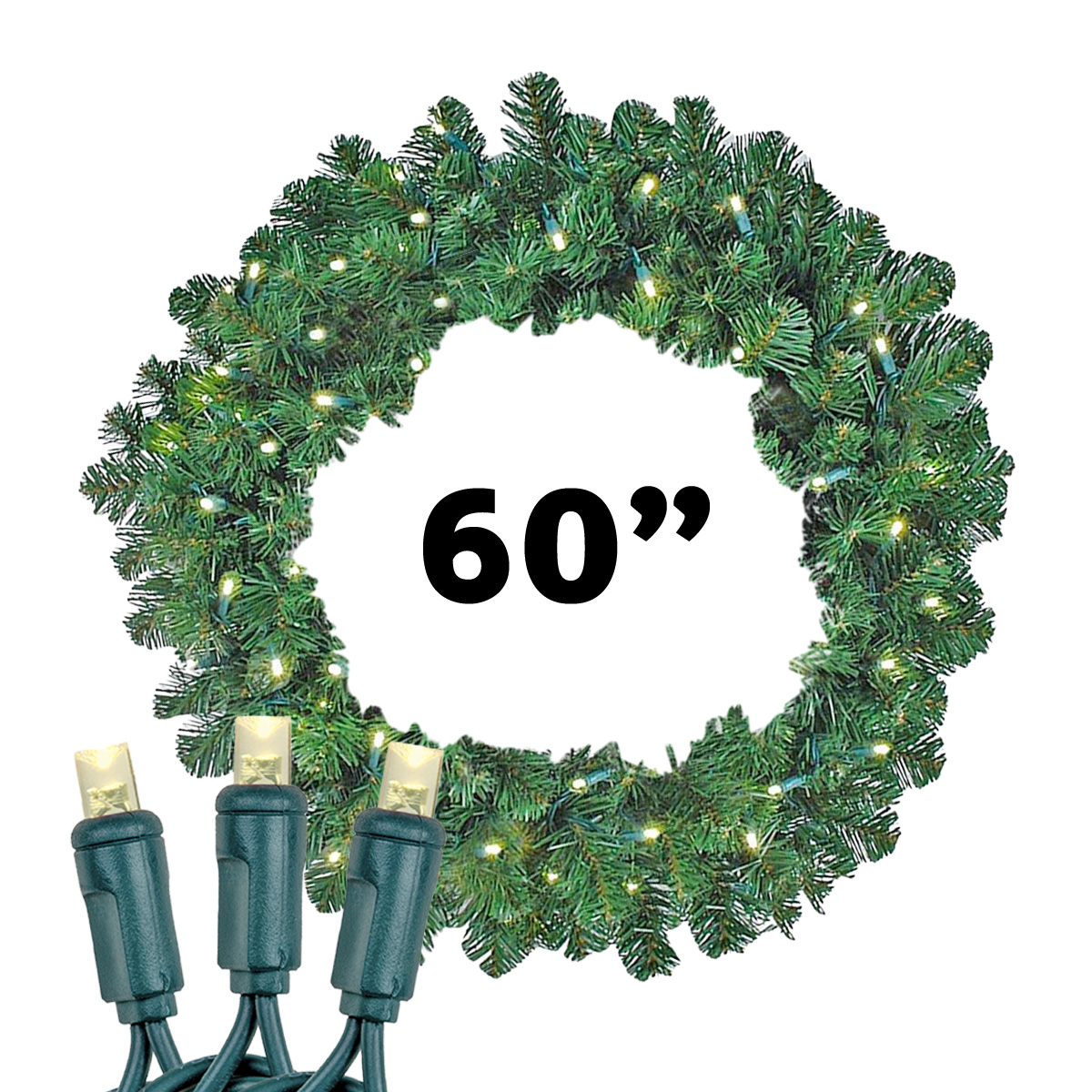 Spread the holiday spirit with our Large Wreaths. Create a brilliant display this holiday season by hanging our 60″ dark green wreath in your storefront, office, or home. The size is ideal for any wall or mantle, authentically detailed to look and feel amazingly real. Perfect for the holiday season. Each dark green wreath is pre-wired with 400 lights and 610 tips, for a lush and authentic look. Add your own touch with bows or outdoor topiary to create a wreath you’ll want to hang year after year. UL listed for indoor and outdoor use.
